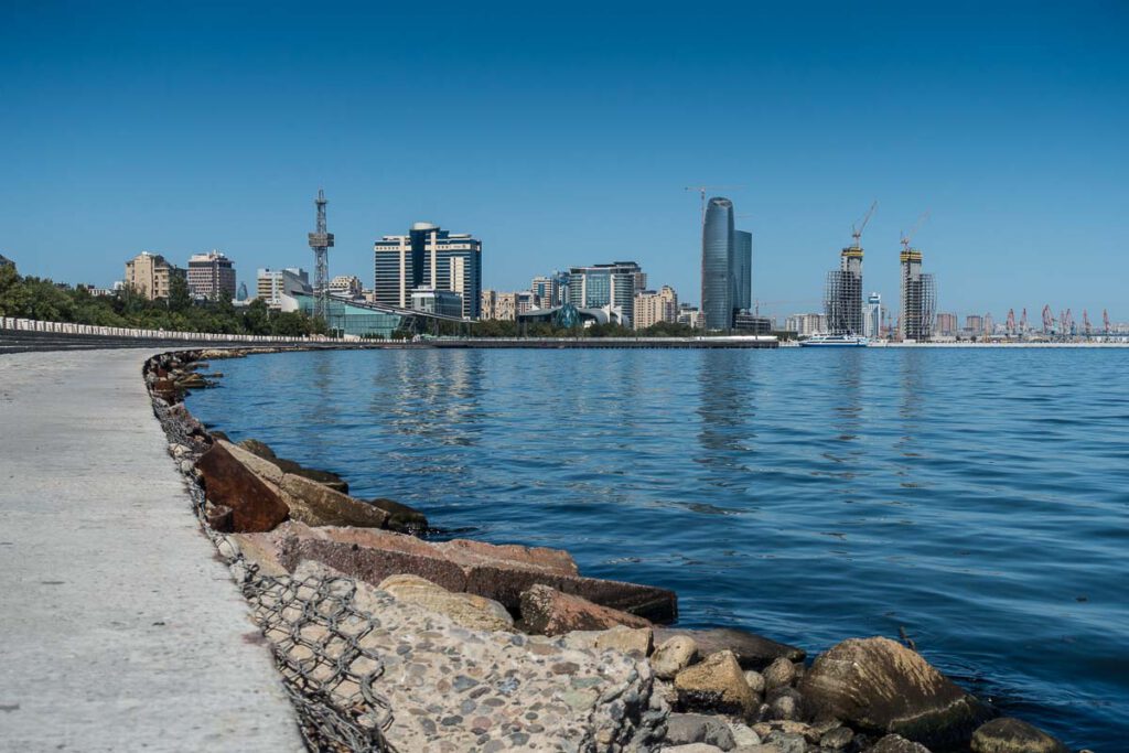 Wann ist nun die beste Zeit für eine Reise nach Baku? Ende Juli bis Mitte August kann es sehr heiß werden. Es ist zwar eine trockene Hitze, aber bei Temperaturen von über 35° ist es trotzdem ganz schön schweißtreibend. Und man fährt schließlich nicht nach Aserbaidschan um nur im Kaspischen Meer zu baden, auch wenn die Kulisse am Strand mit den Bohrtürmen im Wasser schon etwas exotisches hat!