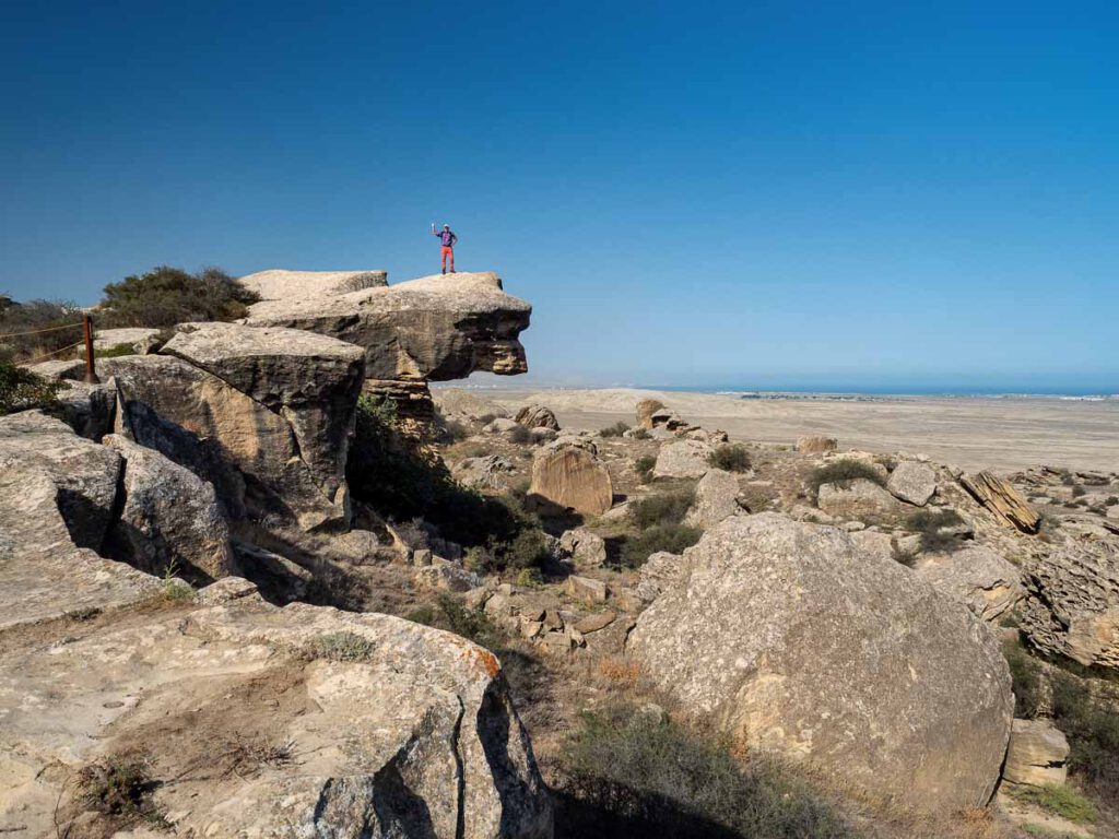 Doch nicht nur mit den bizarren Schlammvulkanen sondern auch mit unzähligen Felszeichnungen von der Steinzeit bis zu den Römern, die dadurch ihr Vordringen bis zum Kaspischen Meer dokumentiert haben, lockt diese Gegend.
