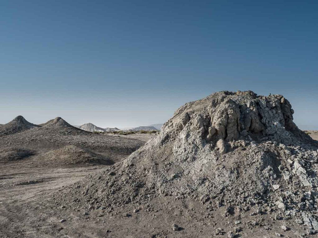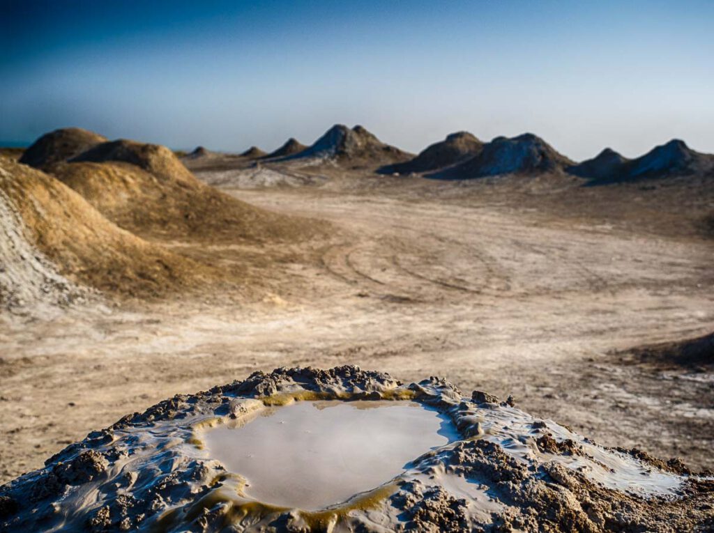 Im weiteren Umkreis von Baku findet sich ein geophysikalisches Highlight, das mit nichts auf der Welt vergleichbar ist: die Schlammvulkane, die sich hauptsächlich in der Gegend von Qobustan, südlich von Baku, befinden. Gut für den Reisenden, der sich die Schätze dieses Landes allein erschließen möchte, ist die Abgeschiedenheit und Unzugänglichkeit dieser geologischen Besonderheiten. Kein Wegweiser, keine Straße führt zu den Vulkanen. Einige lassen sich mit Hilfe ortskundiger Einheimischer mit dem Geländewagen erreichen.