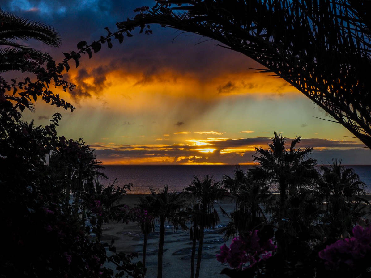 Anfang Dezember ging es dann in ein Hotel am Strand. Für mich eher ein ungewöhnliches Ziel, hatte aber einen privaten Hintergrund. Bei meinem ersten Besuch begann gerade erst die touristische Erschließung Jandias, es gab noch keinen öffentlichen Nahverkehr und Trampen war angesagt. Und die Einheimischen nahmen auch jeden mit. Allerdings war Jandia extrem dünn besiedelt und es konnte schon vorkommen, dass man auf der Straße nach Morro Jable schon mal 30 Minuten wartete, bis da überhaupt mal ein Auto vorbei kam, das dann dafür in der Regel einen auch mitnahm. Unser Plan war von Morro Jable ca. 25 km am Stand bis zu diesem Hotel zu laufen, damals hieß es Los Gorriones. Um dann von dort aus zurück zur Straße zu laufen um anschließend zurück nach Tarajalejo zu kommen. Früh morgens starteten wir gut gelaunt und waren zeitig in Morro Jableund kauften Wasser für unseren „Spaziergang“. Nur waren die 4 Liter Wasser zu wenig und damals gab es zwischen Morro Jable und dem Hotel nichts außer Sand, Meer und Sonne. Da wir damals bei Flut oft im Wasser laufen mussten und die Sonnencremes noch nicht wasserfest waren, schafften wir es gerade noch völlig dehydriert bis zu dem Hotel. Die Lippen aufgerissen, die Fußrücken mit Blasen übersäht, schauten sie uns an der Poolbar etwas skeptisch an, als wir nur Wasser pur wollten. Sie hatten wie damals üblich nur so kleine 0,1 Liter Fläschchen und schickten uns in die Ladenzeile des Hotelkomplexes. Leider waren dort, es war noch Siesta, alle Läden zu und schon vor Wassermangel halluzinierend, zudem des Spanischen nicht mächtig, gelangten wir durch eine offene Tür in den Verwaltungstrakt des Hotels und nicht in einen Waschraum wie erhofft. Dummerweise fiel diese Tür ins Schloß und die Türen des Verwaltungstrakts ließen sich nur mit Schlüssel öffnen. Die Gänge waren menschenleer, tja Siesta, und Wasserhähne nicht zu finden, irgendwann treffen wir dann doch eine Angestellte und konnten ihr durch Gesten und unser Äußeres klar machen, dass wir am Verdursten waren und sie holte uns aus der Küche Wasser. Unser Engel entließ uns in den Gästetrakt und führte uns noch zu einem Waschraum, wo wir uns die Salzkruste von der Haut waschen konnten, aber nicht ohne uns auf das Symbol auf den Wasserhähnen hinzuweisen, das eindeutig war: Kein Trinkwasser!