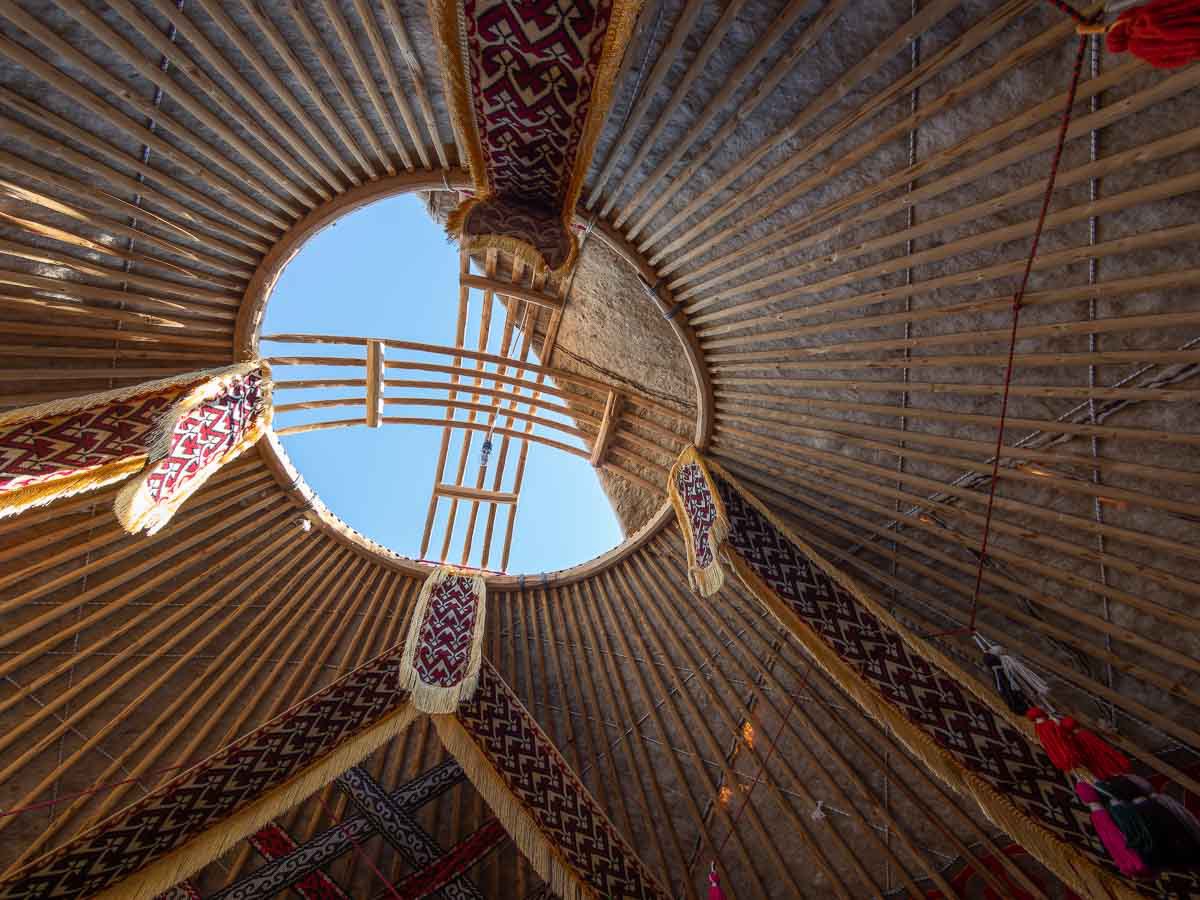 Zufälligerweise war in der Nähe des Komplexes eine naturgetreue Nachbildung eines kasachischen Nomadenlagers mit Bewohnern aufgebaut, wo man interessantes über die nomadische Kultur der Kasachen erfuhr.