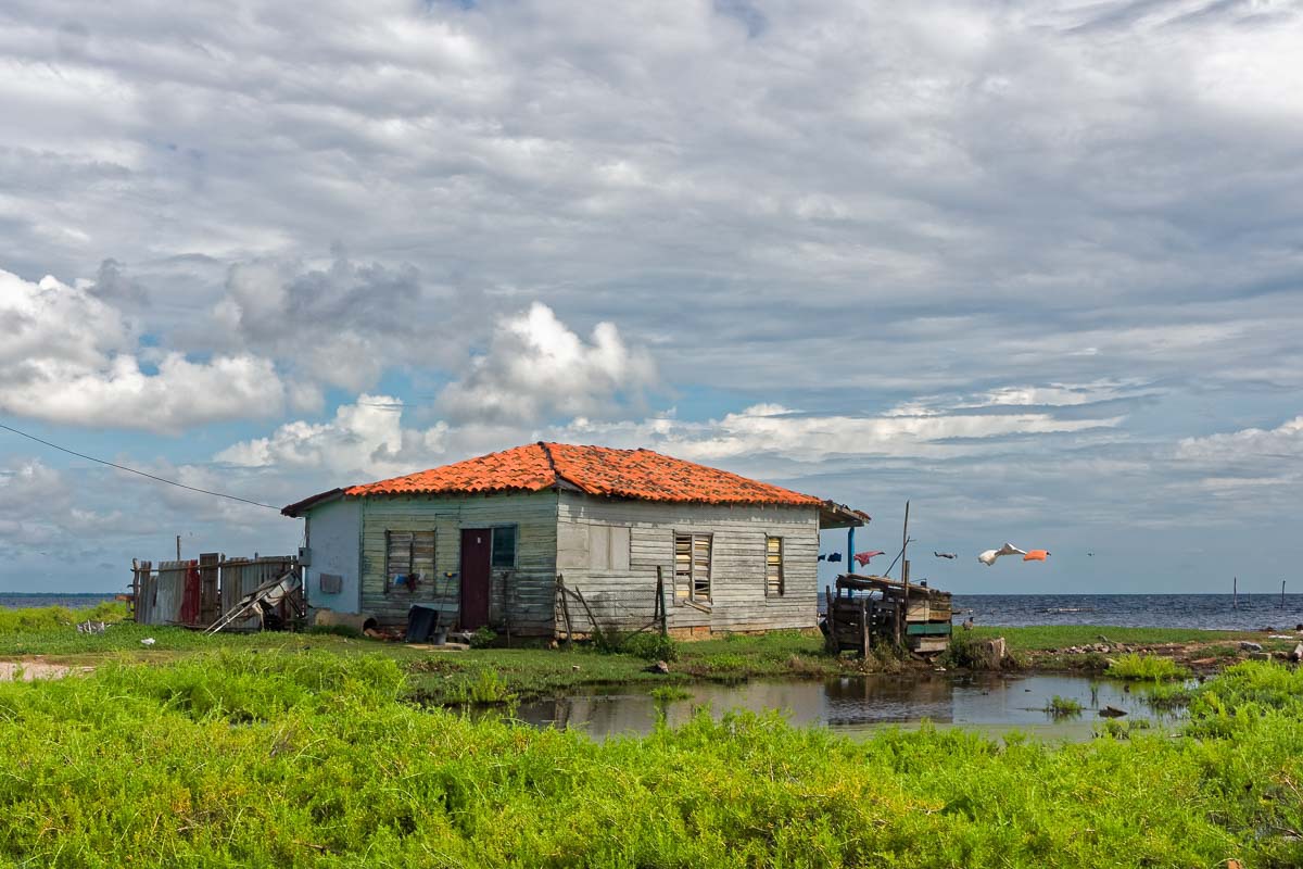 Auf Empfehlung eines Einwohners machen wir noch einen Abstecher an die Südküste nach La Caloma am karibischen Meer. Dort erwartet uns ein noch vom letzten Hurrikan gezeichneter Strand mit einem hurrikanresistenten Strandhaus aus Beton.