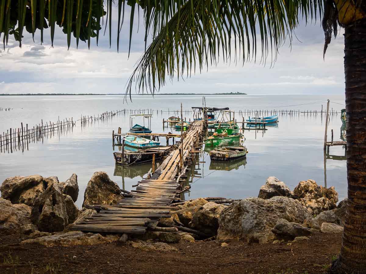 Auf der sonst unbewohnten Insel gibt es sogar eine Strandbar, allerdings nicht am Anfang der Insel, dort sind lediglich die Reste eines ehemaligen Militärpostens zu finden, wegen dem die Straße und der Damm gebaut wurden. Wegen der schnell aufziehenden Tropengewitter und der hohen Luftfeuchtigkeit sind abgedichtete Gehäuse und Objektive sehr sinnvoll. Zumindest aber ein regenfester Rucksack. Auf dem Rückweg trifft man bei auf ein ehemaliges Bergbaukombinat, die Minas de Matahambre, das wie so viele nach dem Zusammenbruch der Sowjetunion stillgelegt wurde.
